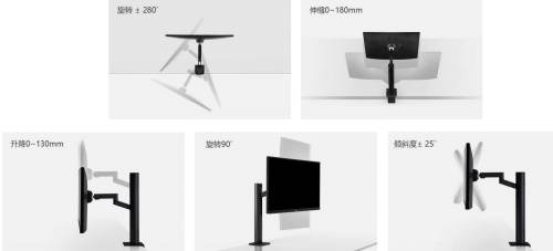 正是这个原装支架,使得Ergo系列显示器得以解锁更多显示新姿势。该显示器除了可以轻松实现正负25度的倾斜、前后180mm伸缩,以及0-130mm高度调节,90度的垂直旋转调节更是小儿科,它甚至还能做到X轴正负280度环绕旋转,让屏幕始终保持在用户合适的工作状态。