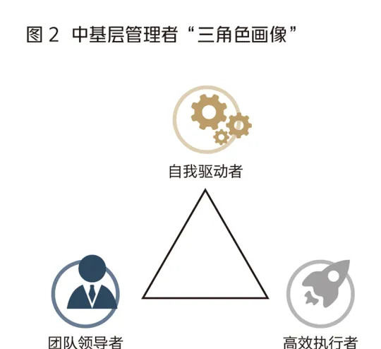 由此,我们描绘了胜任的中基层管理者的“三角色画像”,即他们必须同时是高效执行者、团队领导者和自我驱动者(图2)。