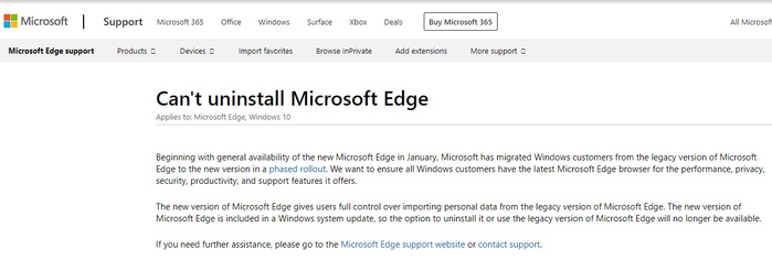 IT之家获悉,微软在题为《无法卸载微软Edge》的支持文章中指出,