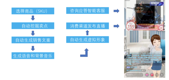 我们还可以通过数字人多模态交互,综合语音、情绪、视觉形象等等做一种更加自然、更加拟人化的人和机器的交互。通过人工智能技术,我们希望可以为数以亿计的每一个商品都配上一个带货主播和专属客服。