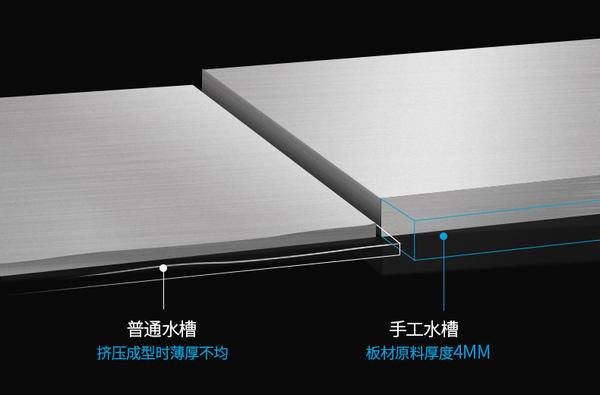 卡贝304手工单槽也是卡贝精工品质的代表之作。304不锈钢是非常经典的水槽材质,出色的耐腐蚀性和强度使得其非常适合厨房这种潮湿环境。卡贝在严选304不锈钢材质的基础之上摒弃机器挤压成型,坚持采用手工打磨处理,因此而来的优势也是显而易见的,手工水槽板材不仅厚实也更加均匀。