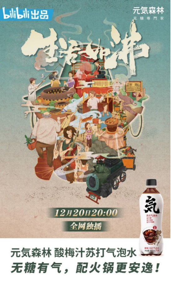 值得一提的是,元気森林这次与Z世代高度聚集的B站开展内容合作,对于B站大批的Z世代忠实粉丝来说,更是一次强势露出。通过与两部美食纪录片的合作,元気森林成功将燃茶、元汽水与当下年轻人最喜欢的烧烤、火锅等消费场景建立强关联,和“怕上火喝加多宝”有着同样的效果。“燃茶”用18天1000w销售额的成绩霸屏,淘内搜索量增长了6倍。