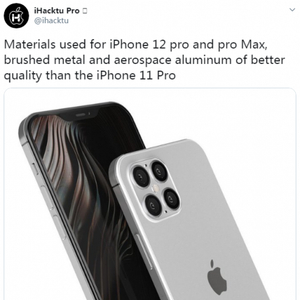 【TechWeb】根据苹果官方此前透露的消息,今年的秋季新品发布会将依旧在9月份举办,届时全新的iPhone 12系列旗舰等多款硬件、软件和服务将悉数与大家见面,而iPhone 12系列新机无疑是最受瞩目的焦点,将包含iPhone 12、iPhone 12Max和iPhone 12 Pro、iPhone 12 Pro Max两个版本共四款机型。现在有最新消息,近日有外媒透露称,其中的iPhone12 Pro系列将会采用更加耐用的航空铝材质打造。