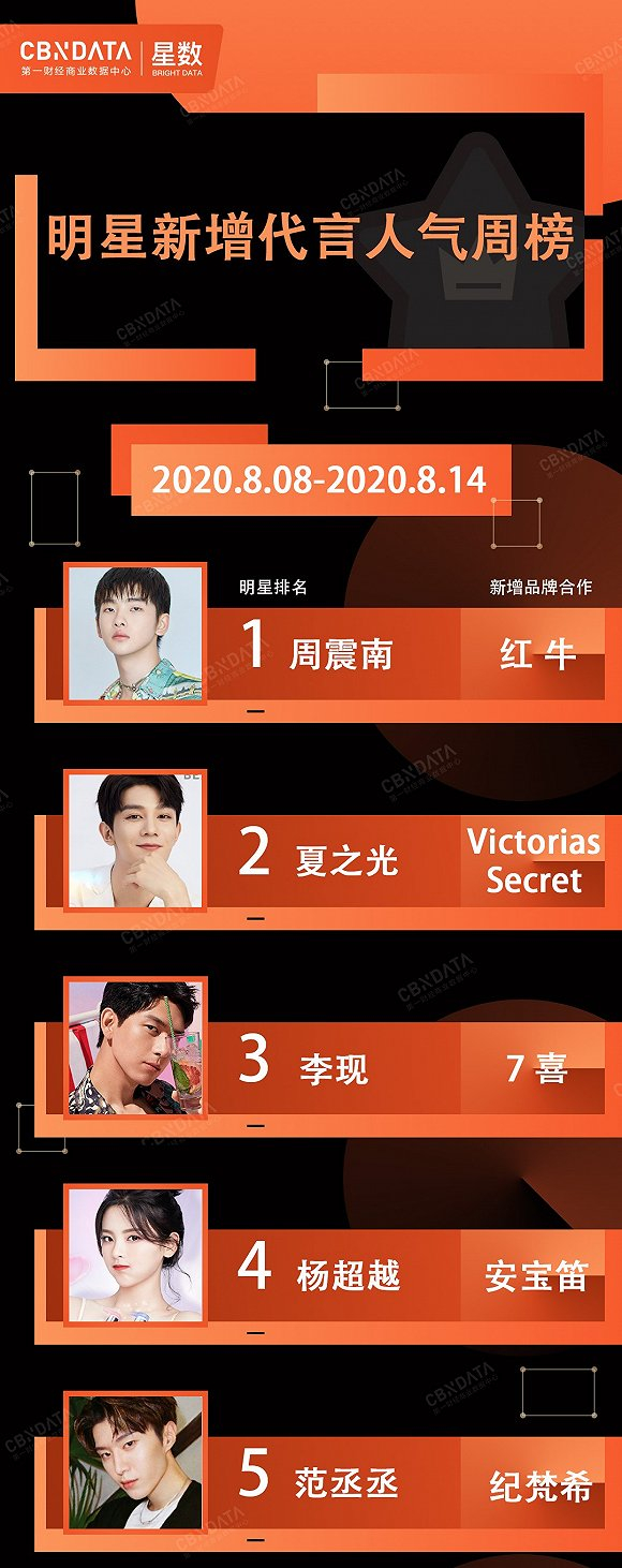 CBNData星数全新发布“明星新增代言人气周榜”及“明星代言周报”,