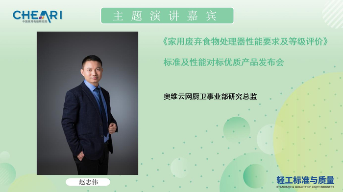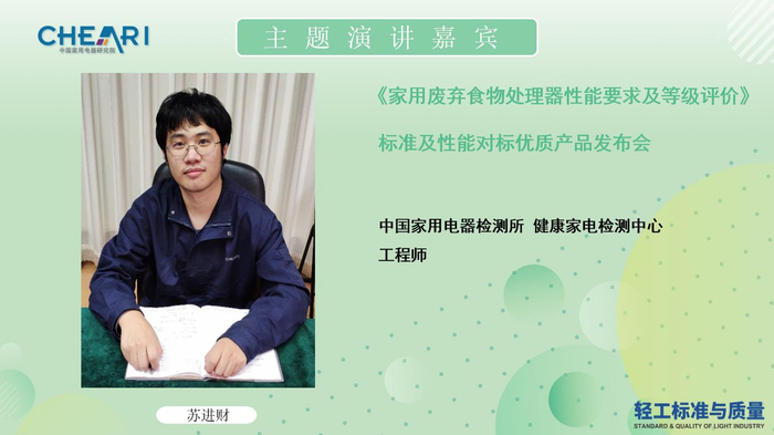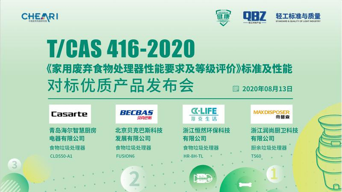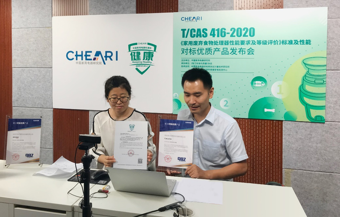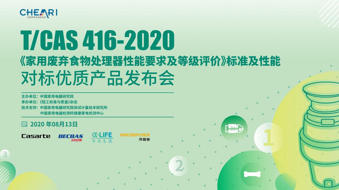 8月13日,由中国家用电器研究院主办,《轻工标准与质量》杂志社承办,中国家用电器研究院测试计量技术研究所和中国家用电器检测所健康家电检测中心技术支持的“T/CAS 416-2020《家用废弃食物处理器性能要求及等级评价》标准及性能对标优质产品发布会”在线举行。