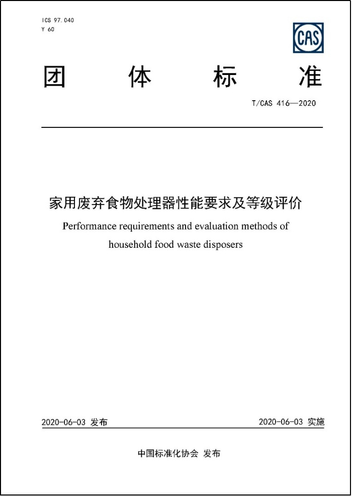 首个家用废弃食物处理器性能等级评价标准发布