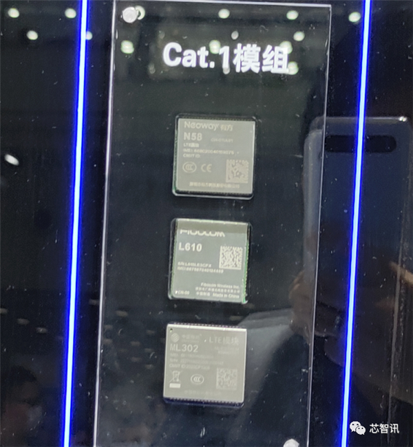紫光集团的展台上,也展示了三款基于春藤8910DM的Cat.1模组:有方N58、广和通L610和中国移动ML302。