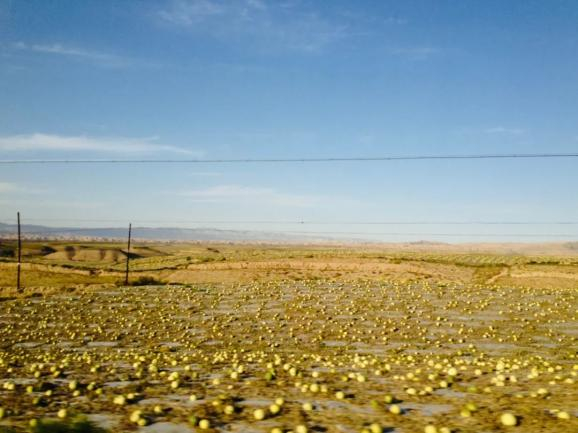 ▲ 甘肃靖远的籽瓜田。从车窗望出去,满地籽瓜仿佛随着车轮一同向前滚动。摄影/密林