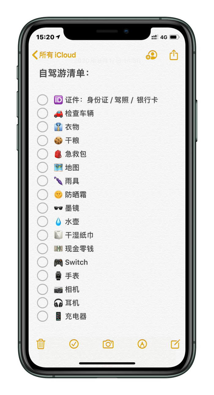 此外,备忘录还内置了一个小型的清单功能,虽然功能性方面无法与苹果自带的提醒应用相比,但却十分适合用来记录一些「To do list」的内容。