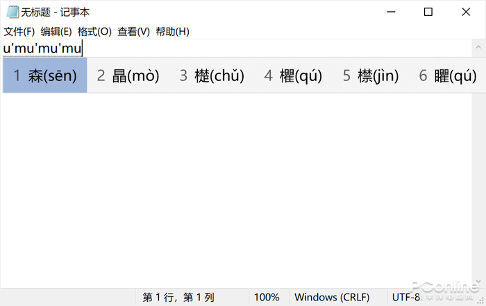 在Windows 10输入法中,拆字输入生僻字的步骤是和常见输入法一致的:输入“u”即可进入拆字模式,接着再分别输入生僻字的偏旁部首,例如输入三个“木”,就可以打出“森”字了。除了偏旁部首,还可以输入笔画、符号等等,实用性十足。