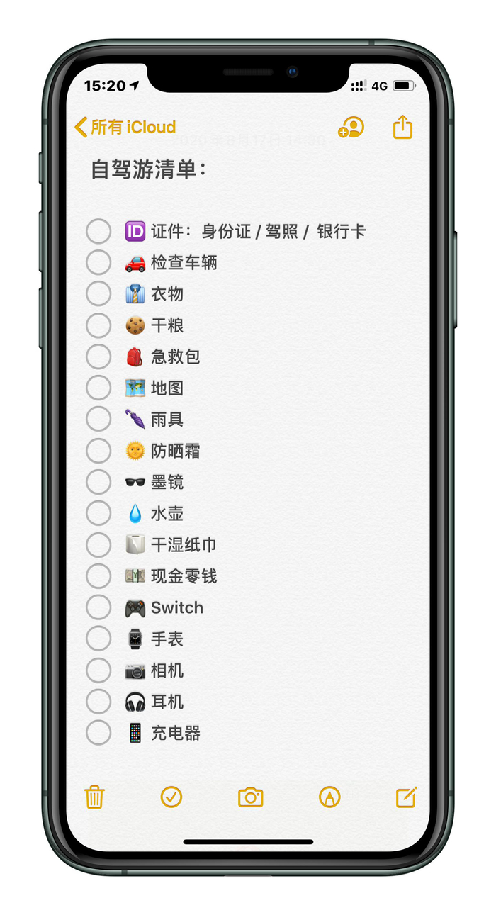 此外,备忘录还内置了一个小型的清单功能,虽然功能性方面无法与苹果自带的提醒应用相比,但却十分适合用来记录一些“To do list”的内容。