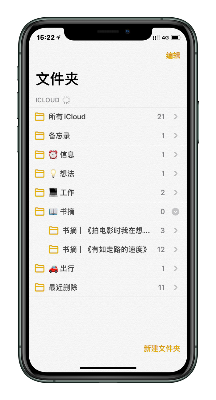 此外,备忘录还支持创建文件夹和子文件夹,通过手动对不同类型或者不同主题的备忘录进行分类,可以确保备忘录保持井然有序: