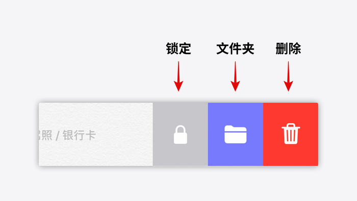 如果你觉得拖动太麻烦,也可以直接在需要移动的备忘录项目下,向右滑动该条目,选择紫色的文件夹图标来移动这条备忘录。