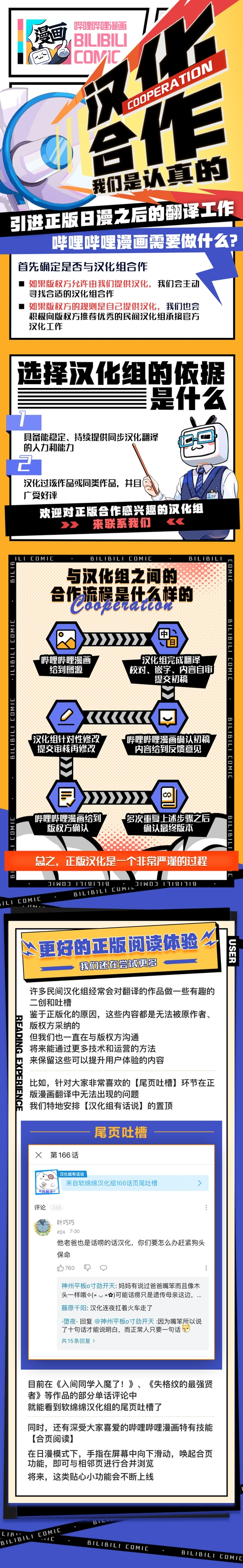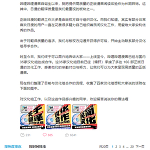 通常来说,正版日漫的翻译时有版权方自己组织汉化的,但也有很多民间汉化做自己组织了汉化工作,为此B站与版权方沟通之后,开始练习这些汉化组合作。