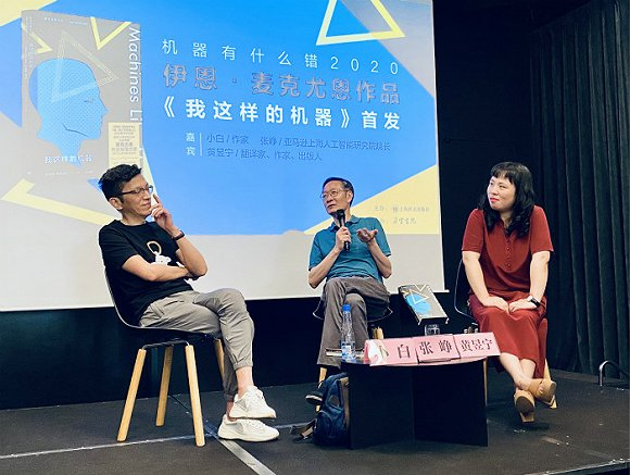 2019年,《我这样的机器》出版。2020上海书展期间,该书中文版面市。日前,黄昱宁、作家小白和上海纽约大学教授、亚马逊上海人工智能研究院院长张峥出席了在朵云书院上海旗舰店举办的“机器有什么错2020——麦克尤恩小说《我这样的机器》新书发布会”,与观众分享了他们阅读这本小说时的感受。