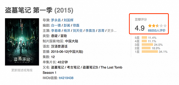 相较之下,《盗墓笔记》在影视化的过程中,始终陷入口碑困局,难以突破。