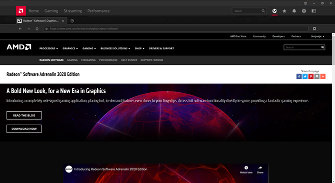 Radeon Software Adrenalin 2020 Edition内置了Web浏览器,帮助您在游戏通关