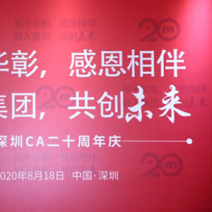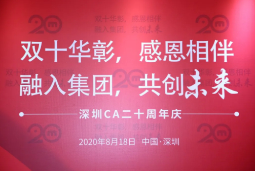 8月18日,深圳CA“双十华彰,感恩相伴 融入集团,共创未来”二十周年庆在深圳盛大召开。数百位政府领导、行业专家、客户代表、平安集团和金融壹账通领导、深圳CA总部及各地分公司同事等一起共同见证了深圳CA飞云踏海的二十年。