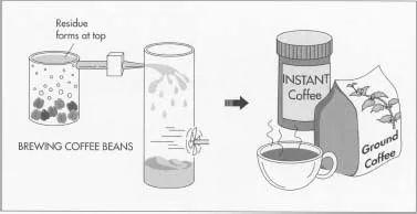 操作过程主要使用的是“升华”的物理原理:咖啡液冻成大冰坨→大冰坨碎成小冰渣→ 然后给它升华→ 剩下的就是固体咖啡了。