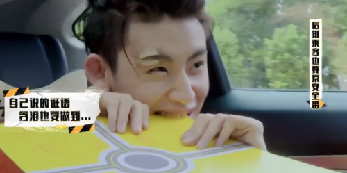 看到小伙伴一个接着一个零蛋,得了2分的小鬼立马膨胀了。自称分数最高,并立下flag:谁比我分高,我立马把纸箱子给吃了。如此狂妄引发众怒。最后面对戚薇的4分,直接打脸,被逼啃起纸箱。自己说的诳语,含着泪也要吃下。