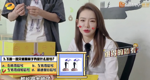 “交通警察实在是太帅了,估计顾不上看他是什么手势,因为就注意看脸了。”面对交警一个手势代表什么意思的问题,戚薇故意以花痴附体的模式,玩起了“王顾左右而言他”的套路。