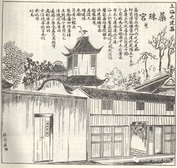 据同治《上海县志》中记载:“渡鹤楼,在城南,一名南园,乔炜建。池通潮汐,时闻水声,木石最为苍古。中有明志堂、锦石亭、息机山房、珠来阁诸胜。曹垂灿曾居之,后为太学李心怡别业,更名也是园。今改蕊珠宫。”文字虽简,但大致上交代了也是园的历史和演变过程。