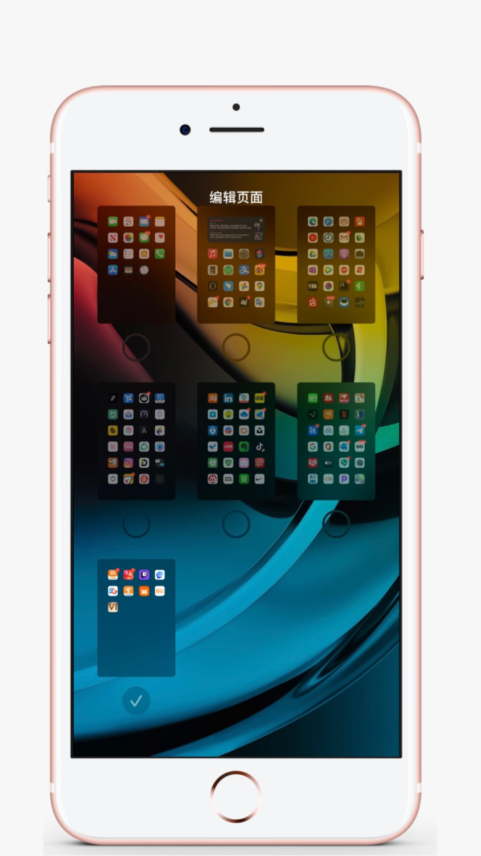 3. 将想要删除的主屏幕缩略图下方取消「打勾」后,全面屏 iPhone 点击右上角「完成」或从屏幕底部往上拨返回,非全面屏 iPhone 可点击屏幕任意空白区域或点按 Home 按键返回。