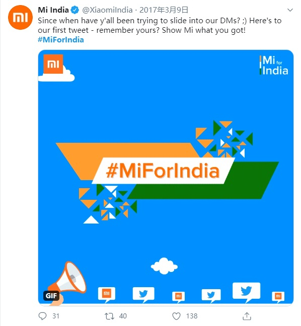 IT之家发现,这次并非是首次出现Mi For India,至少从2017年3月份的小米印度官方账号宣传来看,#MiForIndia 很早就存在了。