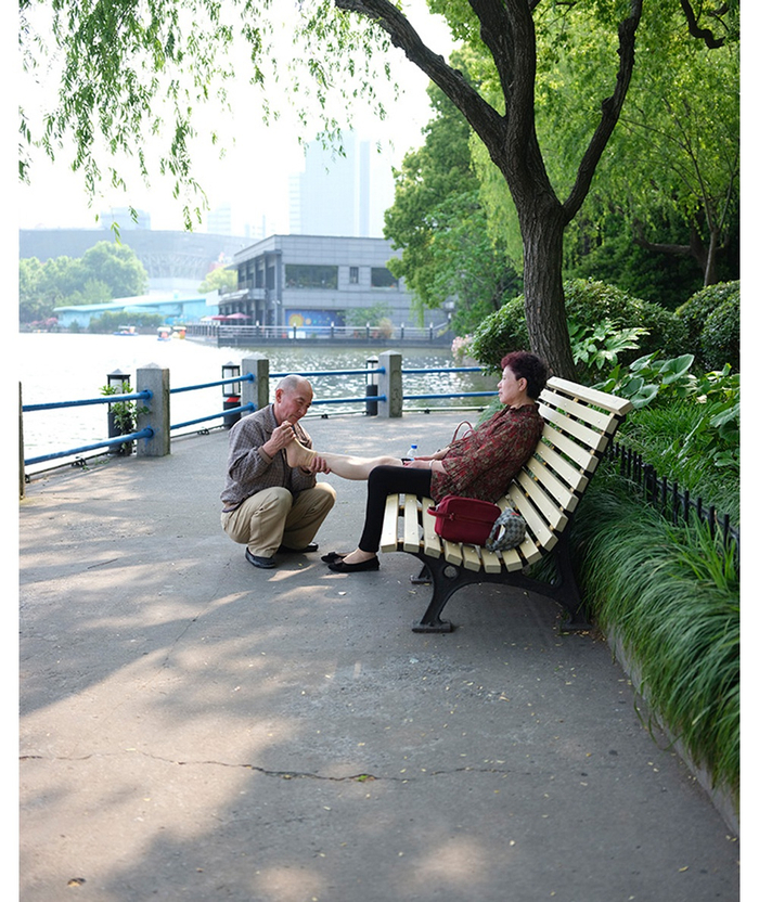 上海的公园复合了众多有趣的功能:相亲、舞厅、口语角、秀场……如果你带着静一静的目标走入公园,难免要“游园惊梦”了。上海作家btr对此给出了自己的解释:倒不是说他们有表演或哗众的意图,只是在公园里,“正常”的阈值松动了。毕业于东华大学拉塞尔设计学院的摄影师严怿波入选“上海相册”的这组作品则“候分掐数”地呈现了公园如何既是日常生活的飞地,也是奇人异事的剧场。