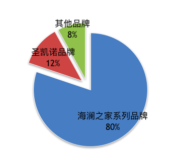 海澜之家全线业务线总共有七条,分别是:男装海澜之家、职业装团体定制圣凯诺、家居线海澜优选、高级女装OVV、快时尚黑鲸、童装线男生女生、婴儿装英式。从收入结构来看,海澜之家主品牌收入占比超过了80%。排名第二的职业装团体定制圣凯诺贡献了11.81%,其余所有品牌加起来合计收入仅占8%,且海澜之家没有再详细披露每一条业务线的收入情况。