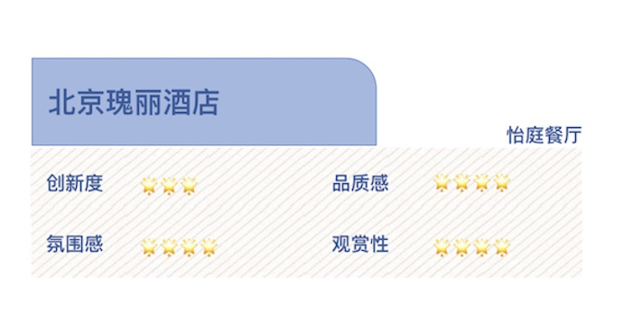 北京瑰丽酒店的怡庭是一间附设葡萄酒酒吧的现代休闲餐厅,互动式厨房里汇集了来自世界各地的厨师,根据季节变化设定的菜单供应法式佳肴。