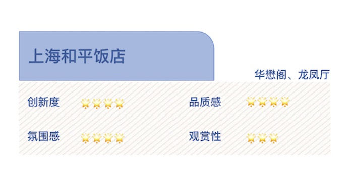 今年七夕,上海和平饭店共推出三款晚宴,满足不同人群的就餐选择。华懋阁“浪漫风情”双人晚宴精选7道美食,既有澳洲和牛肉鞑靼和腌玫瑰花瓣与你“一见钟情”;也有法国露杰鹅肝酱与糖渍玫瑰树莓象征“真爱永恒”。华懋阁的另一个选择:“爱在七夕”双人晚宴也有六道主题菜式,青豆冷汤和烟熏布里芝士让人像是又一次走进了爱情故事里的“绿野仙踪”;玫瑰荔枝凝胶则搭配白樱桃花冰淇淋一起“你侬我侬”。