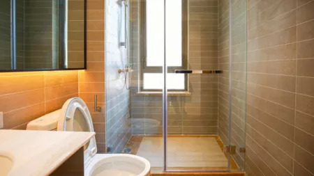 洁具五金采用科勒品牌,大品牌质量更有保障;浴室柜采用石材台面铺装,提升空间档次,柜体下设置有感应小夜灯,帮助夜间出行指引路面;马桶边预留电源,方便业主更换智能马桶盖;马桶旁边还设置了紧急呼叫按钮,出现紧急情况与物业及时沟通;玻璃隔断的设计,保持了非淋浴区的干爽。