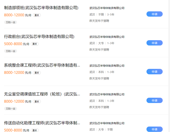 但令人疑惑的是,多个招聘网站显示,弘芯目前的招聘工作仍未停止: