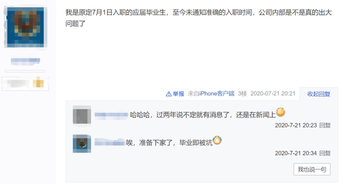弘芯资金链濒临断裂的问题也给今年的部分应届生造成了不小的影响。有不少拿到弘芯 offer 的应届生在知乎、贴吧等发帖表示:原定的入职时间被推迟了,新的入职时间只能等通知。在此形势下,很多同学已经开始考虑重新找工作。
