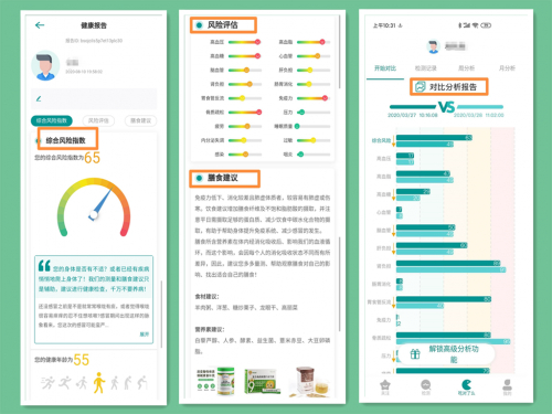 通过结合云端服务器的独特算法以及百万健康数据,可进行专业精准的健康评估,在线健康监测,在线营养咨询、在线饮食管理以及在线营养课程、在线商城购买等服务内容。并且将每一次健康检测报告反馈到个人ID,进行持续大健康数据监测,便于后续的健康管理,真正做到始终为用户的健康保驾护航。