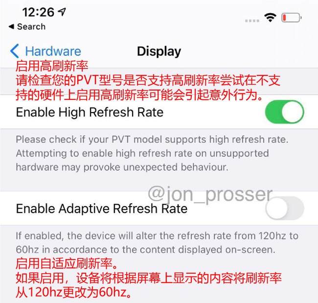 高刷新率屏幕也是近两年手机的发展趋势,90Hz或是120Hz随处可见,有的专业的游戏手机更是上升到了144Hz。最近有外国视频博主爆料出了,iPhone 12 Pro Max的预量产机可以在视频设置页面中开启自适应刷新率。