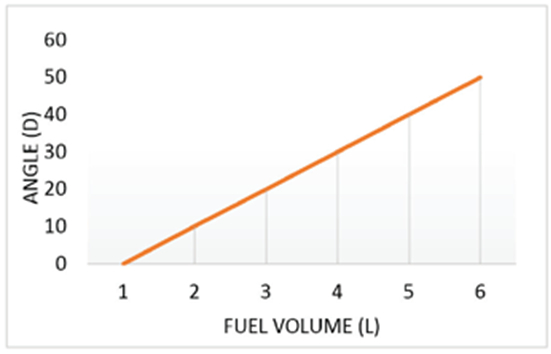 燃油箱结构因汽车型号而异。一些具有规则几何形状的燃油箱会导致线性体积浮动角度。对于这样的燃油箱,只需两点编程就已经足够。图2是规则型燃油箱及其特性的示例。