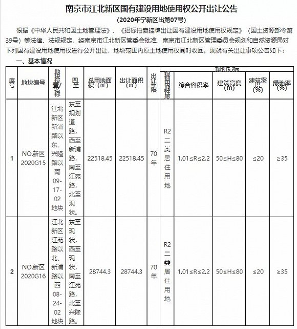 这是继8月26日江北核心区挂出2幅重磅宅地之后的再一次挂出2幅优质宅地。总出让面积51263㎡,起拍总价22.7亿元。NO.新区 2020G15- NO. 新区2020G16限时竞价开始时间将从2020年9月29日10:00开始。