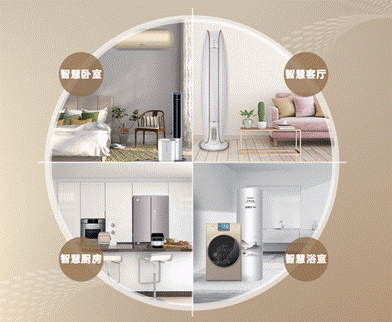 格力·金贝能够通过智能物联技术联动全屋的格力智能家居配套产品,实现家庭全场景的智能结合。作为冰箱、洗衣机、烟灶、洗碗机等等家居的入口,它可以通过语音命令实现家庭电器之间的互联、家庭成员和电器之间的交互、家庭成员之间的共享,以此来打造智慧客厅、智慧卧室、智慧浴室、智慧厨房等场景。