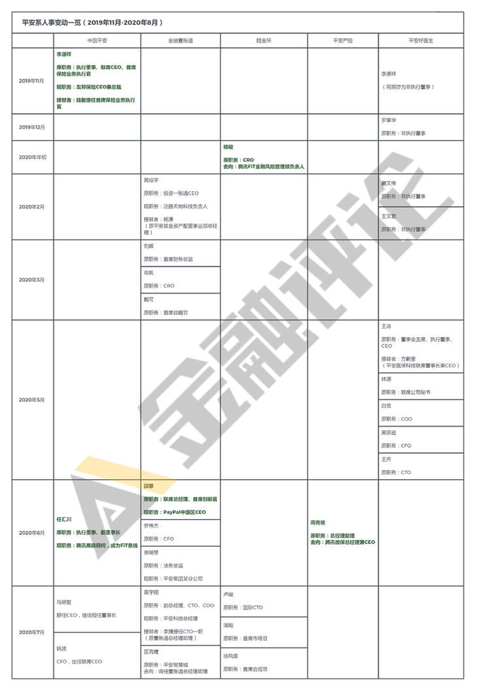 平安系人事变动不完全统计(2019.11-2020.08),雷锋网AI金融评论整理