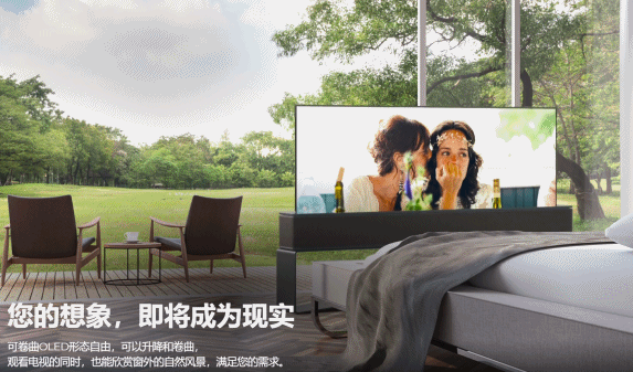 OLED 面板做成的柔性屏,我们也在各种折叠手机上见识到了,电视只不过是大小的问题。
