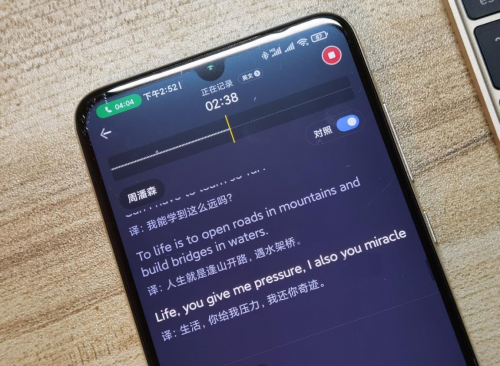 小编继续模拟场景,找出一段英文内容,也是在电话中念了出来——To live is to open roads in mountains and build bridges in waters. Life, you give me pressure, I also you miracle!