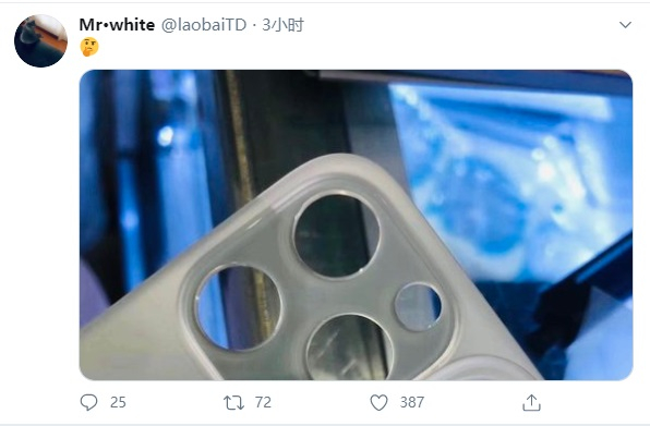 Twitter 爆料人士 Mr·white 分享了新的iPhone 12 Pro的后盖玻璃照片,上面带有 LiDAR 激光雷达扫描仪摄像头布局。