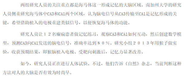 大脑植电极或治疗失忆,同时帮助因中风、老化而失忆的其他人群↓↓
