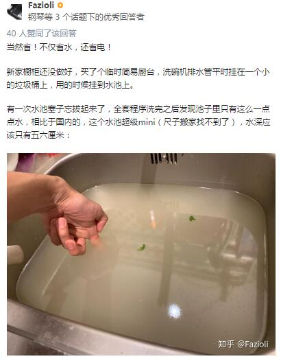 网友“Fazioli”留言道:当然省!新家橱柜还没做好,买了个临时简易厨台,用洗碗机时候排水管就挂到水池上。有一次水池塞子忘拔起来了,全套程序洗完之后发现池子里只有这么一点点水。真是求锤得锤,有图有真相。