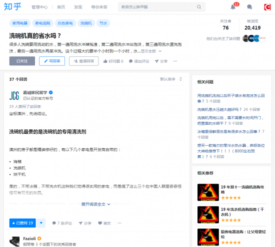 近日,知乎上的一个问题:洗碗机真的省水吗?引来了不少蓝V与网友们的关注并积极作答,目前该话题浏览量已突破2万。