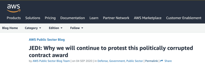 https://aws.amazon.com/blogs/publicsector/jedi-why-we-will-continue-protest-politically-corrupted-contract-award/