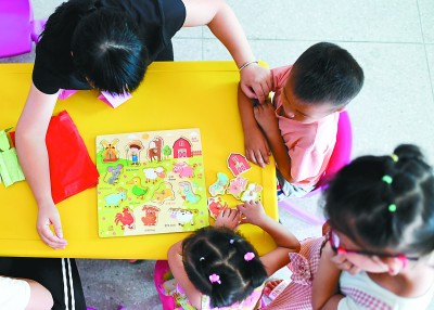 在江西省乐安县龚坊镇南边村的“童伴之家”,“童伴妈妈”带着孩子们玩玩具。新华社发