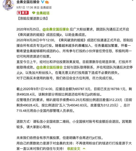 为数不多全网观众参与的机会,却总能在不同程度给《乘风破浪的姐姐》带巨大争议。首次线上投票的复活机制就被网友戏称“魔幻”,而到了成团夜的投票,复杂的投票规则和票数后期不透明化,让整个一周多的打投时间充满了关于“内定感”的疑窦,网友热烈吐槽后,一些姐姐的粉丝团也都相继停止了打投行为。